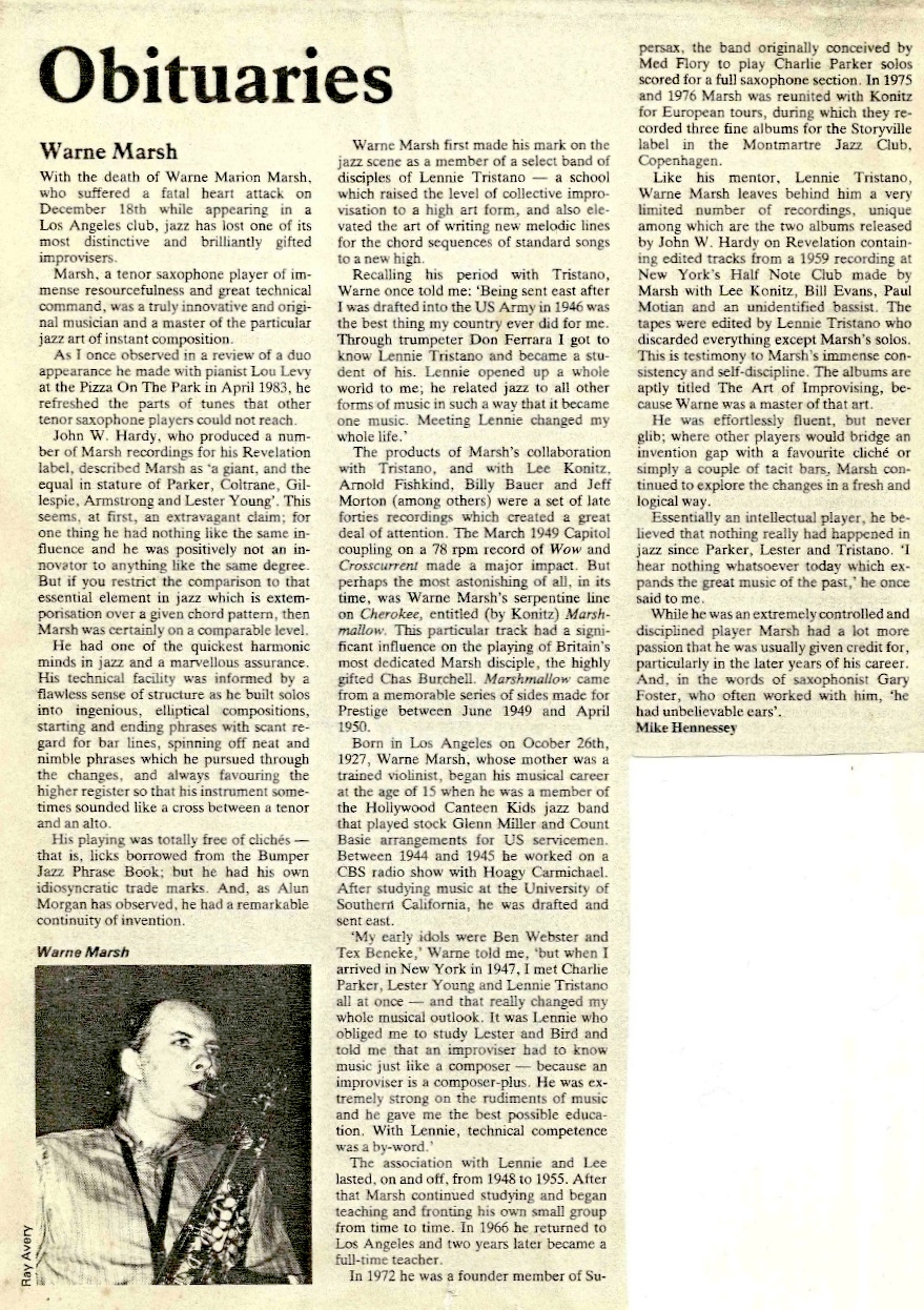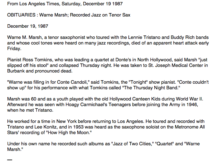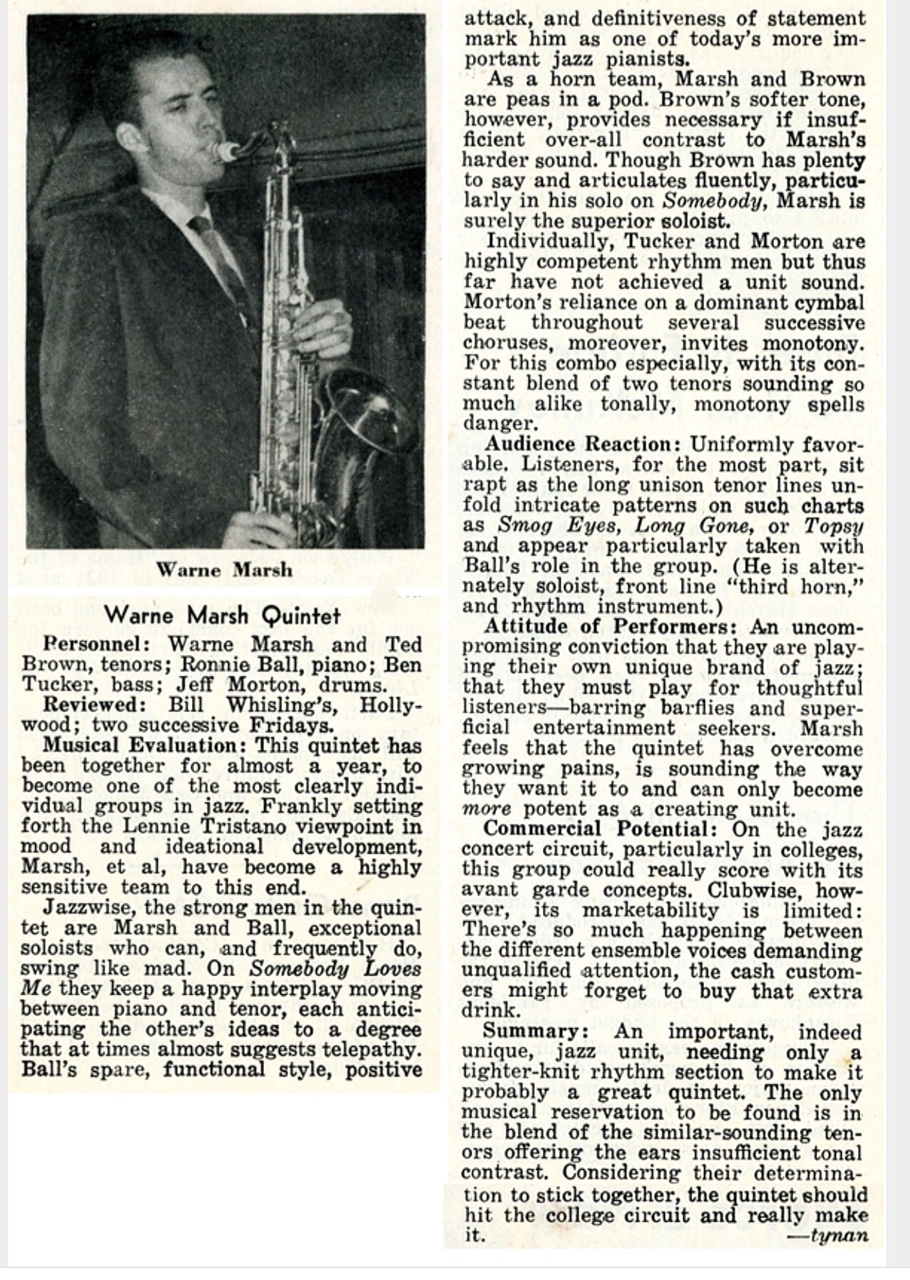 March 21. 1957 reviewing the Warne Marsh-Ted